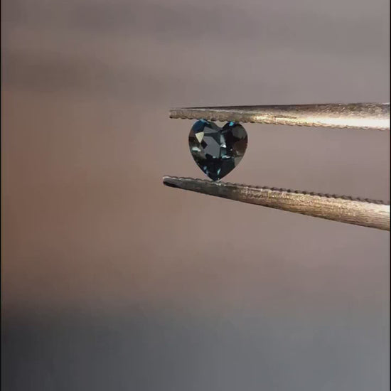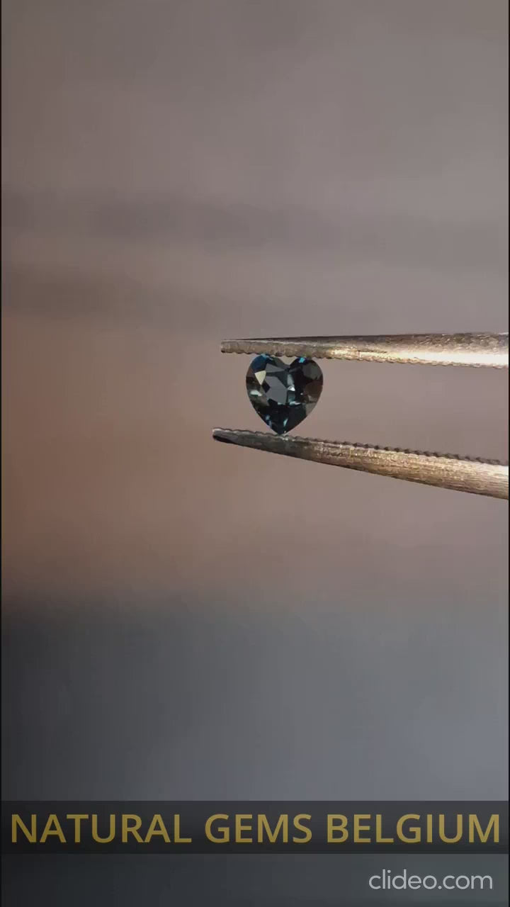 Natural London Blue Topaz, 0.125 ct heart-shaped stone with vibrant blue color. Irradiated for enhanced brilliance and ideal for custom high end jewelry or collectors seeking quality gemstones.