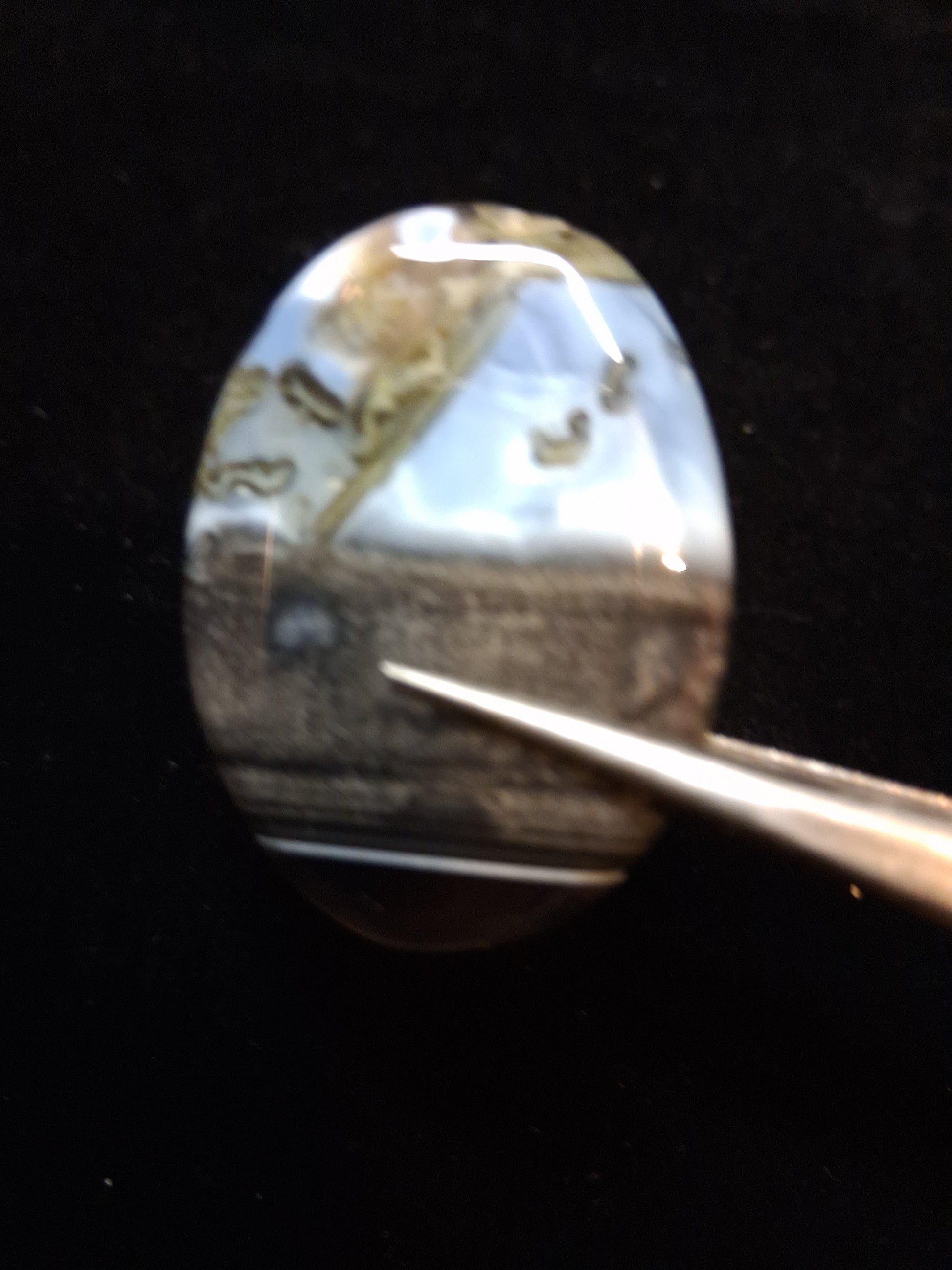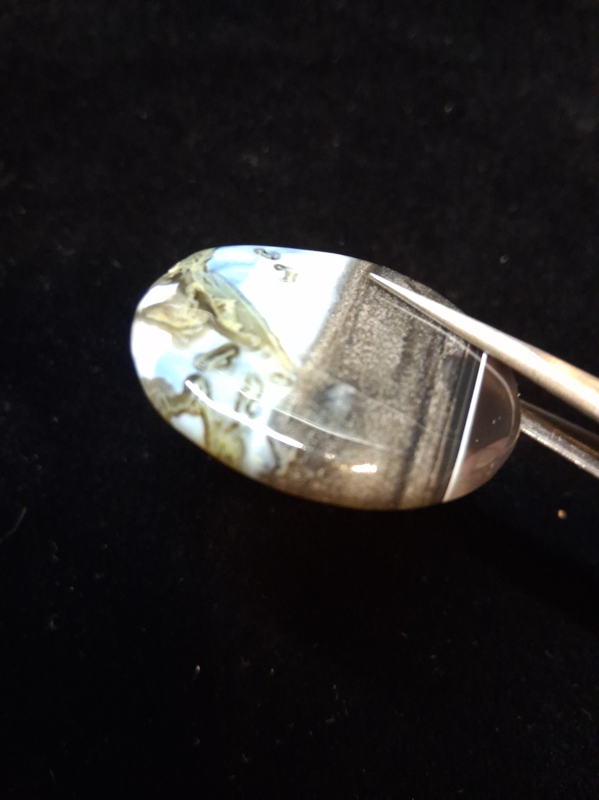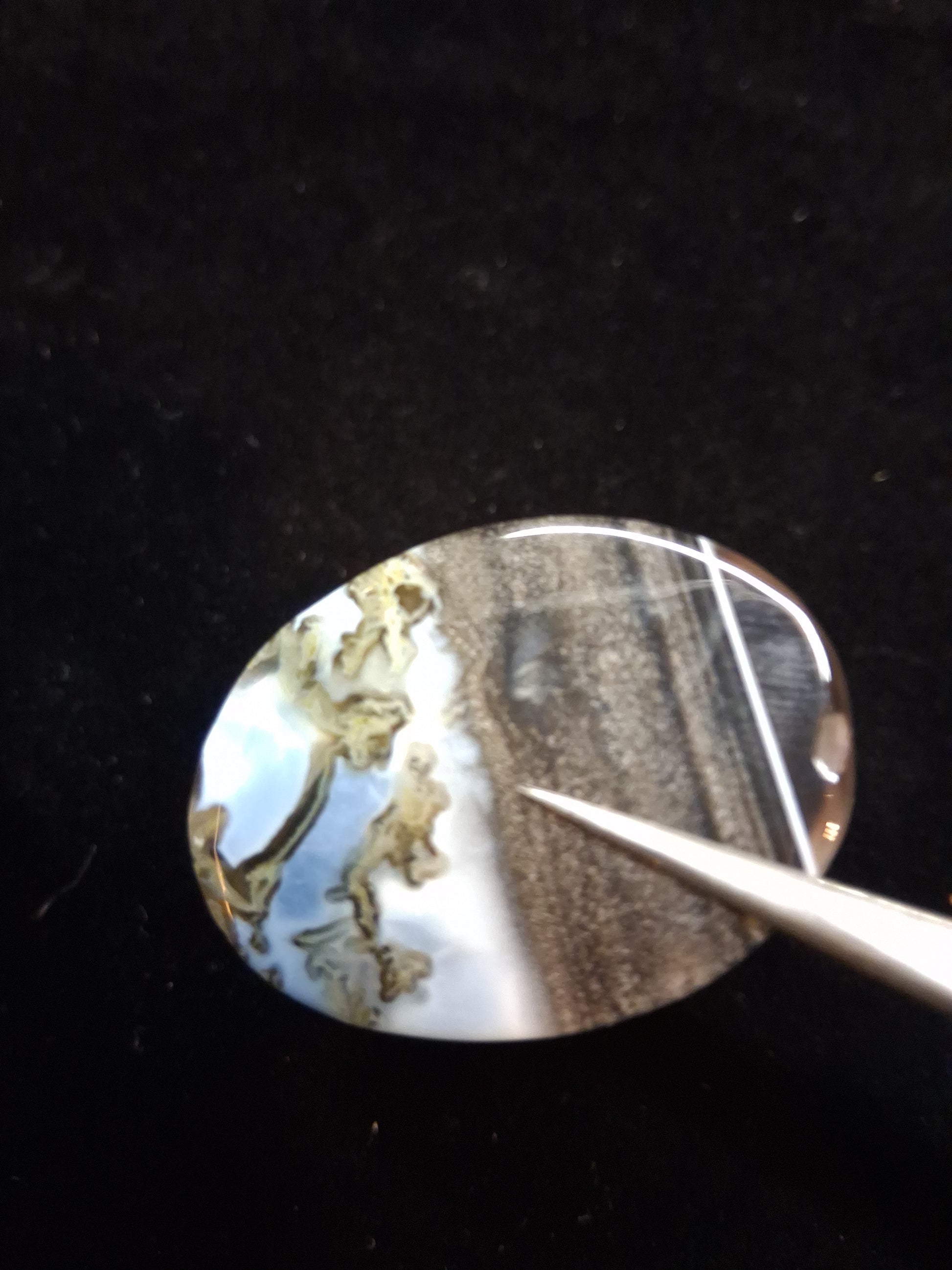 Natural Owyhee Blue Opal Cabochon - 50.141 ct - moss included - oval - scenic pattern