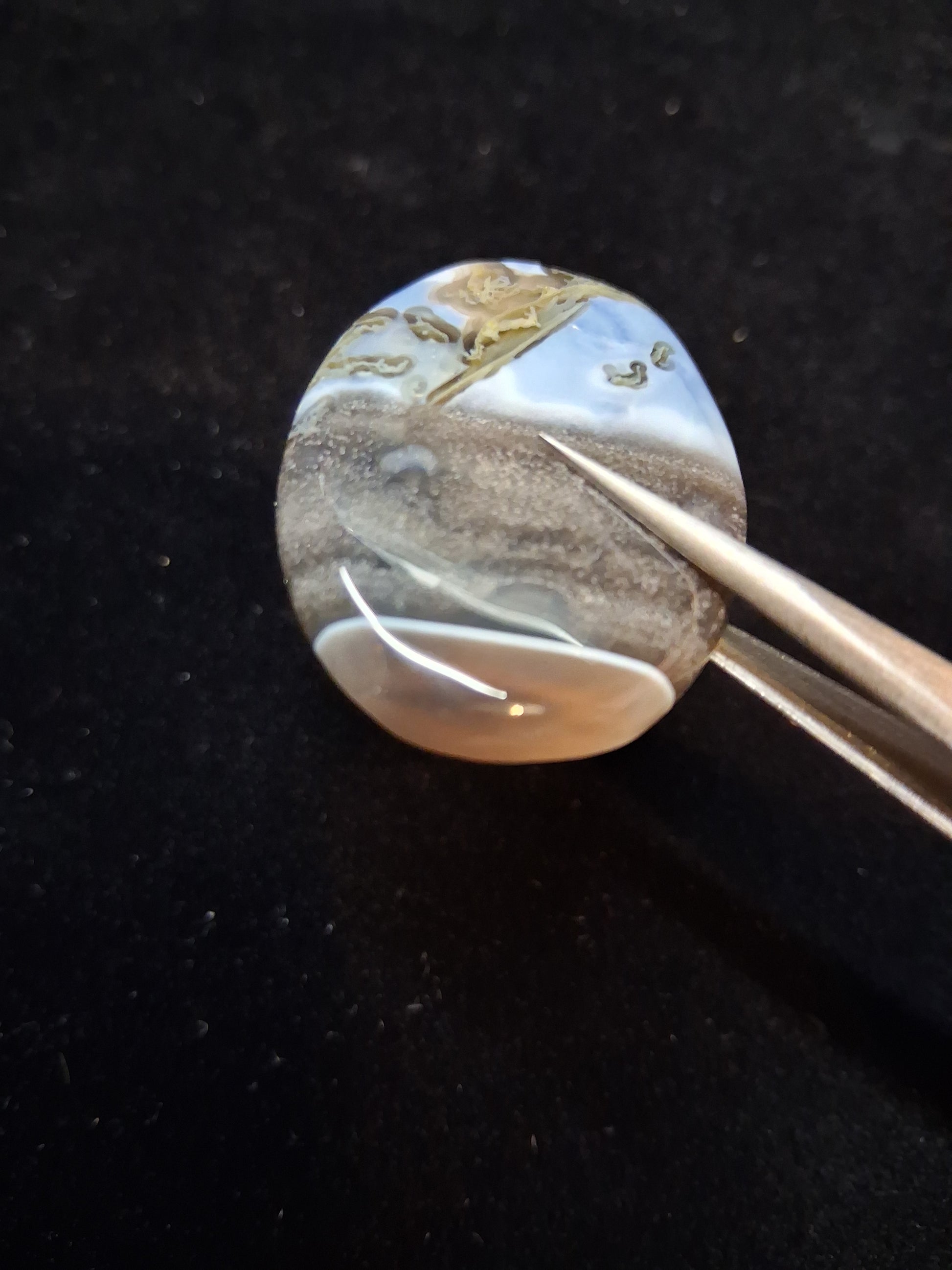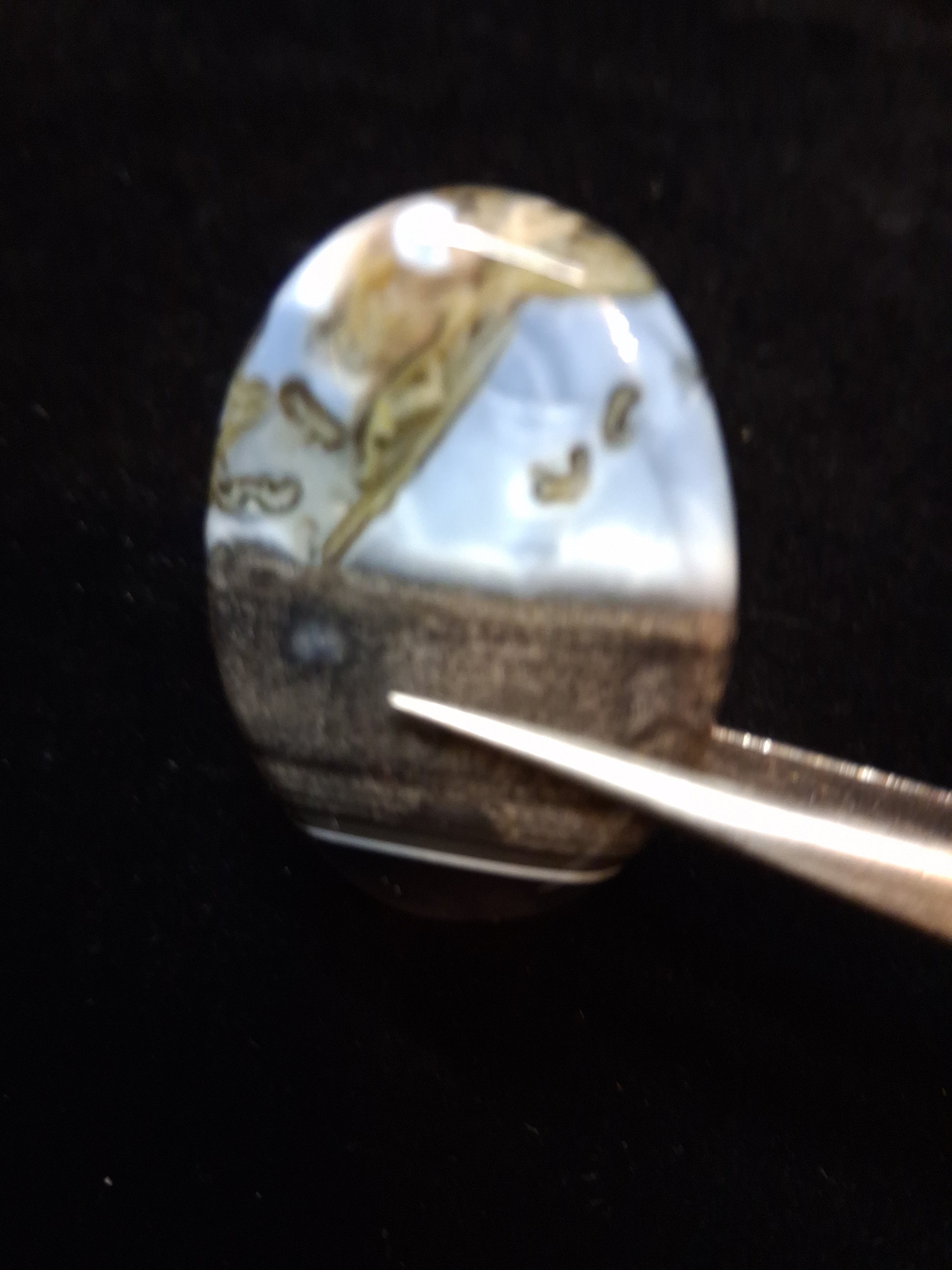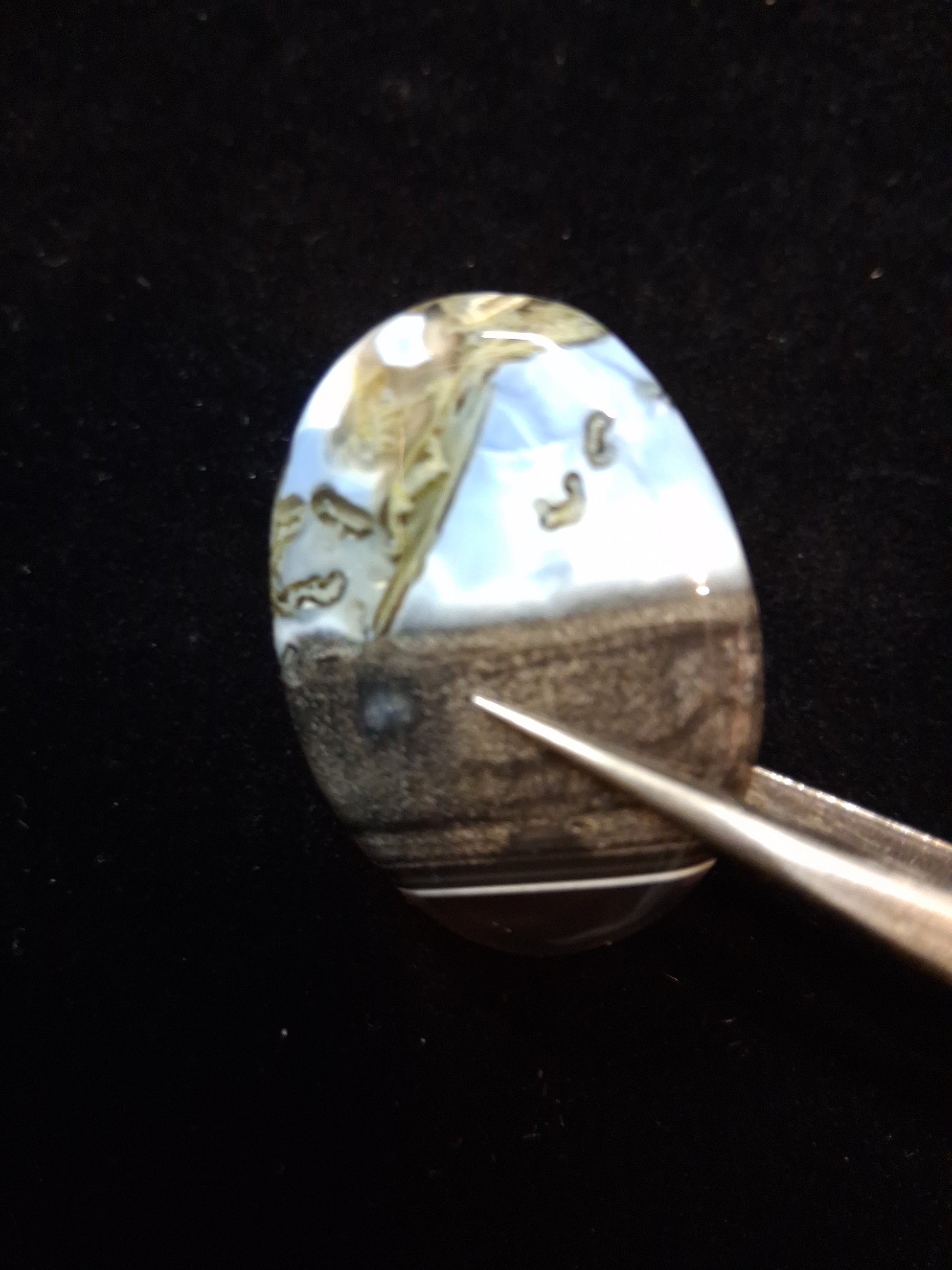 Natural Owyhee Blue Opal Cabochon - 50.141 ct - moss included - oval - scenic pattern