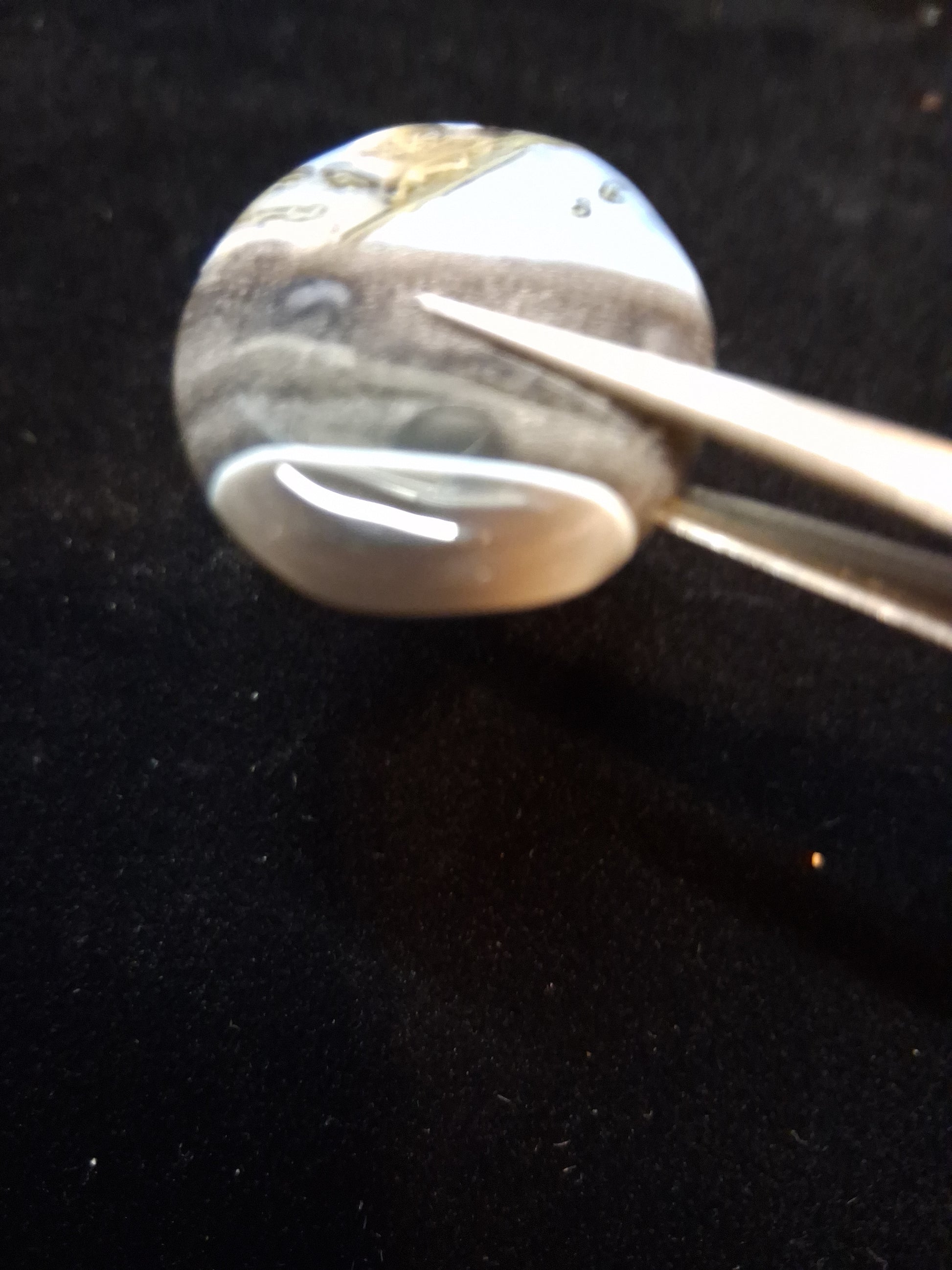 Color : Sky blue, greyish and greenish brown and deep brown striped pattern, moss inclusions