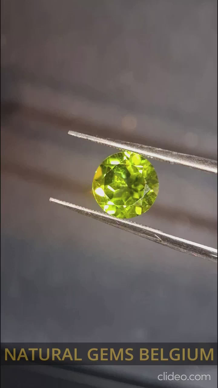 Natural Peridot weighing 2.356 ct in a brilliant round cut. This unheated gemstone is completely untreated, preserving its authentic green beauty and natural character. Ideal for collectors seeking a genuine, high-quality peridot with impressive size and purity.