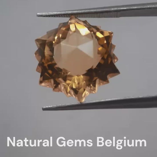 Unleash the natural splendor of this unheated 9.363 ct Citrine, cut in a unique hexagon snowflake shape. Add a touch of elegance to any look with this exquisite gemstone.